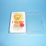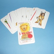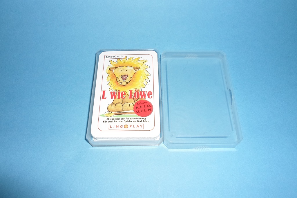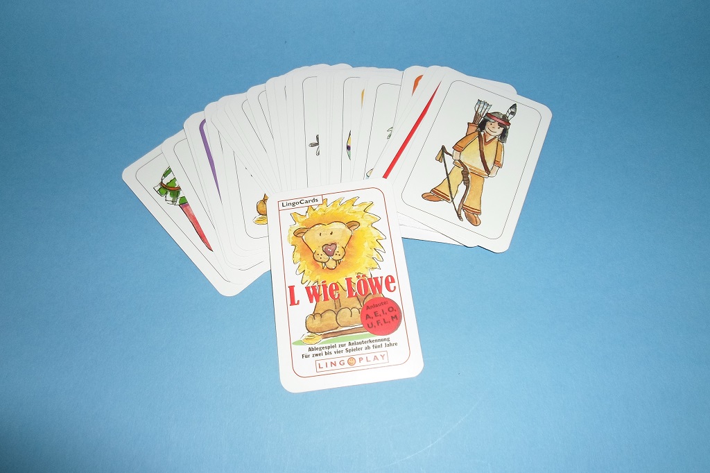 - Ein Ablegespiel, bei dem es darum geht, Wörter mit gleichem Anlaut zu erkennen. Dazu werden die Karten auf acht verschiedene Stapel abgelegt. Mit farbigen Rahmen und den jeweiligen Anlauten markierte Startkarten eröffnen die Stapel. Karten passen aufeinander, wenn die Bezeichnungen ihrer Motive den gleichen Anlaut haben. Auf die Startkarte Insel passen alle Motive, deren Bezeichnungen auch mit einem I beginnen (Indianer, Iglu, Igel). Wer nicht ablegen kann, zieht eine Karte vom Stapel. Es gewinnt der Spieler, der zuerst keine Karten mehr hat.