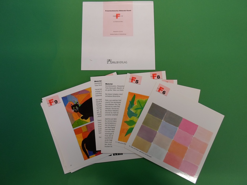 - Diese Arbeitsblätter sind für die Freiarbeit im Bereich Bildende Kunst gedacht und umfassen die Bereiche Grafik, Druck und Farbe. Alle Arbeitsblätter können einzeln bearbeitet werden. Die Aufgabenstellungen sind leicht verständlich, möglichst kurz gefasst, abwechslungsreich, nicht zu arbeitsintensiv und auf die Verwendung weniger Materialien beschränkt. Bilder, Informationen, Beispiele und Motive zur Anregung für die Schüler befinden sich auf den Arbeitskarten.