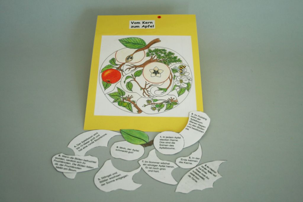 - 1 Arbeitsauftrag, 1 Lernkontrolle, 1 Apfelbild, 9 Puzzleteile